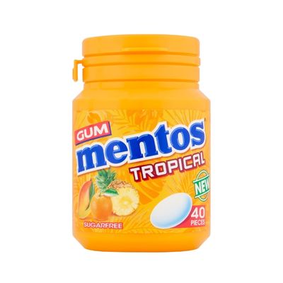 Mentos Gum White Tropical brings a light, tropical‑fruit taste (think pineapple, mango, orange and similar fruity notes) in a sugar‑free chewing gum — ideal if you prefer something fruity instead of mint.